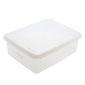 5.7L入りは、もともと業務用として作られた容器です。飲食店や工場では容器の中に入れた食材を取り出す時にフタがピッタリ閉まっていると開ける時に時間がかかり、作業効率が悪くなることからフタの四隅で引掛けて閉まるようになっており、ピッタリ閉まっていません。