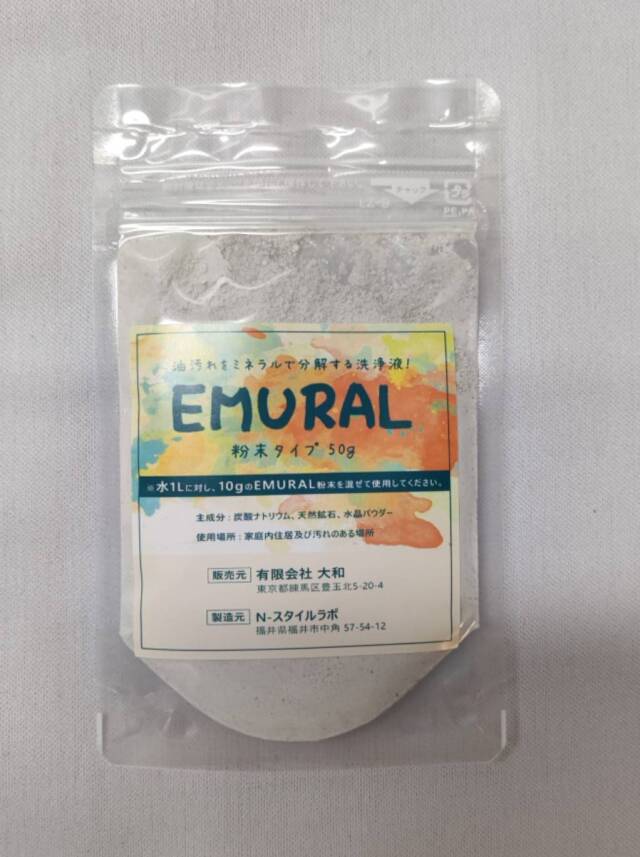 A.EMURALはミネラルを水に溶かして作る洗浄液です。油汚れを分解・洗浄する洗浄液として開発されたエコ商品です。